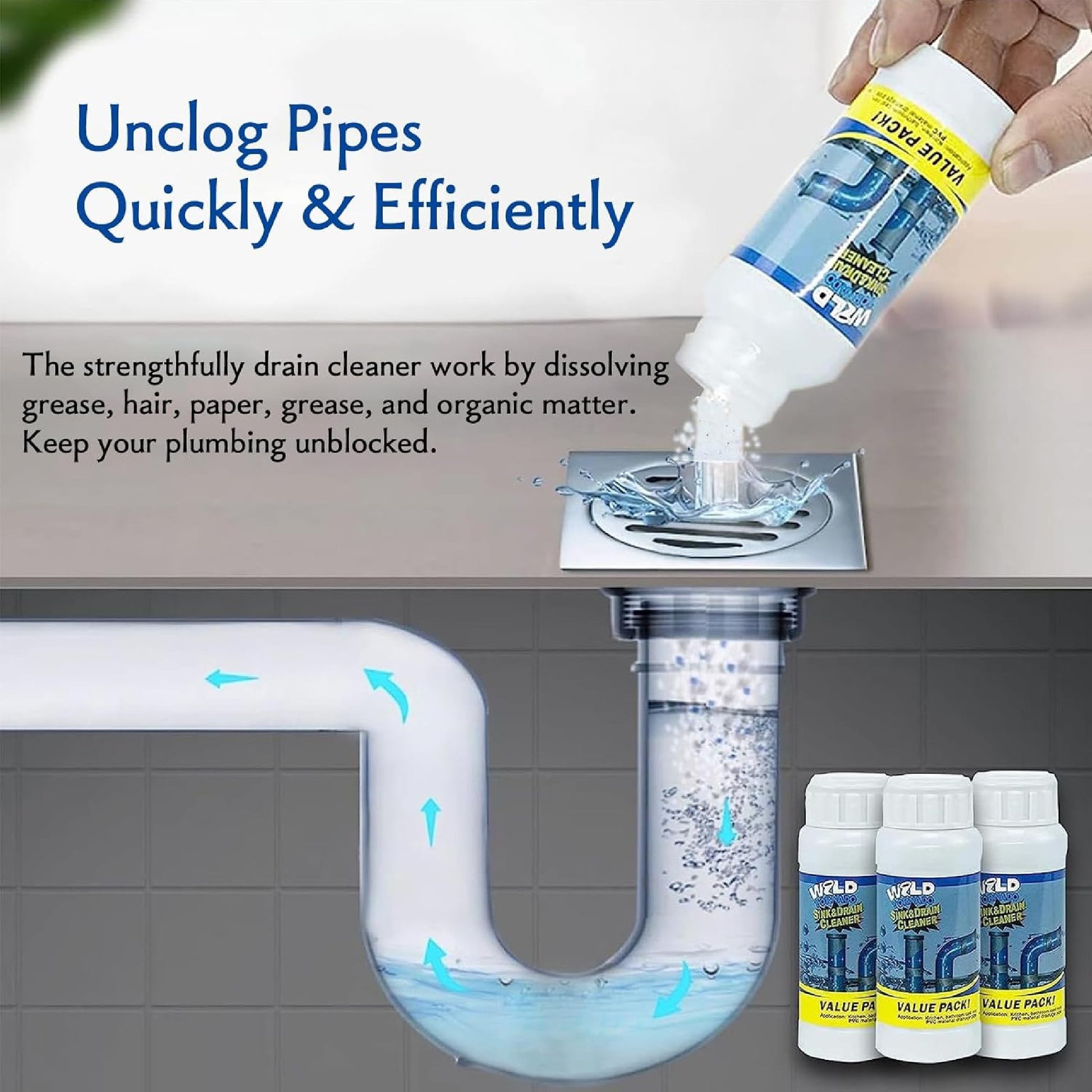 Disuelve grasa, cabello y residuos rápidamente – Ideal para limpiar drenajes tapados y eliminar olores.