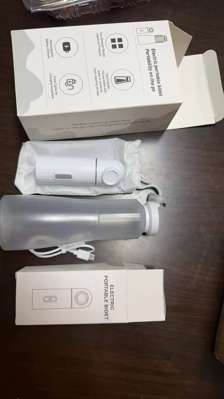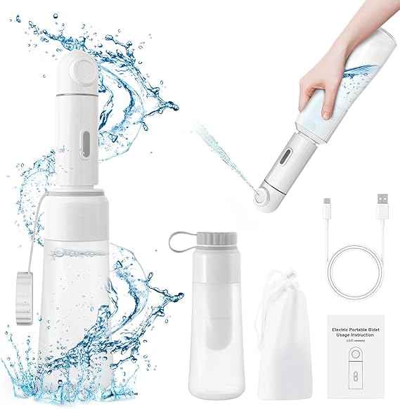 Bidé eléctrico portátil de viaje, bidé rociador eléctrico de 11.8 fl oz con cuerpo integrado para un fácil almacenamiento, dos modos de presión para limpieza de higiene personal para mujeres y hombres